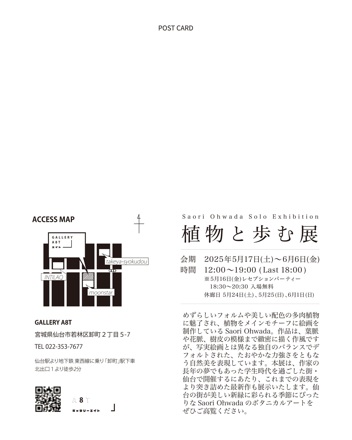春も間近になり、お散歩も気持ち良い季節になってきたので、美味しいコーヒーを片手に作品と植物に囲まれた空間をこの機会に是非堪能して頂きたいです!会場でお待ちしております!